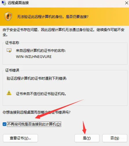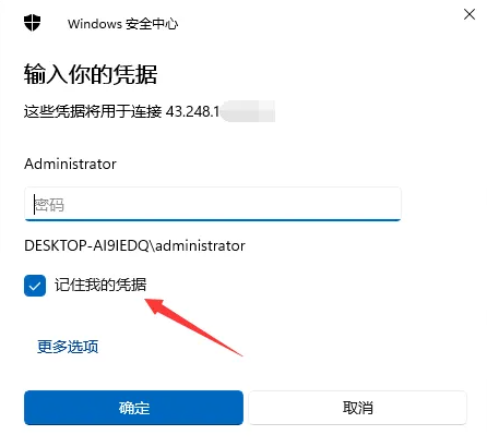 3.第一次登录点击“连接”后会弹出要求输入密码,输入密码后就可以正常进服务器了,(推荐勾选‘记住我的凭据’),如果不需要也可以不勾选,不是必须的
